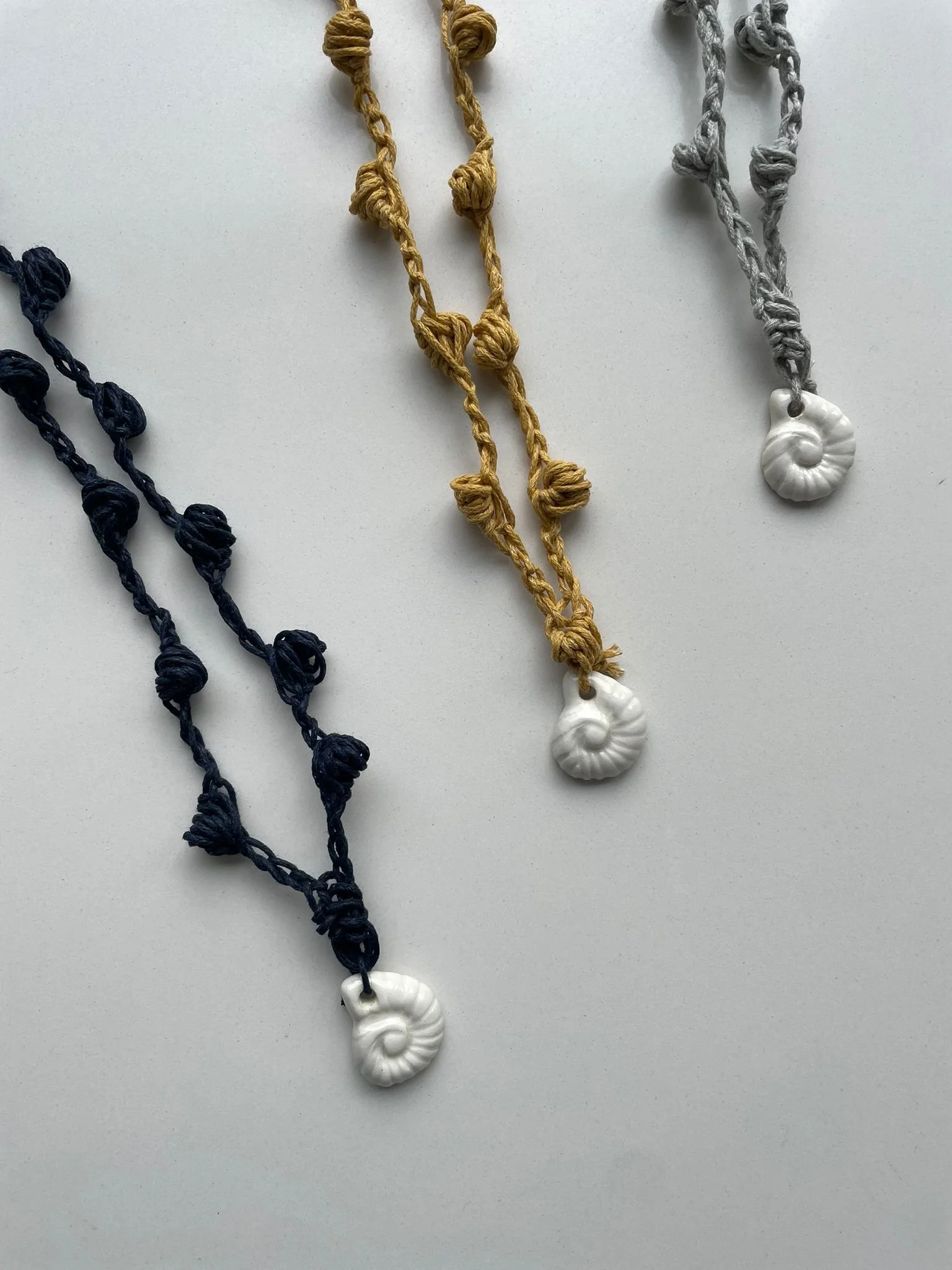 Necklace with a ceramic shell.
